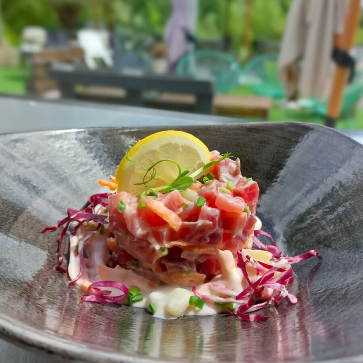 Le Tartare de dorade, marinade grenade, coco et ananas. | 23.00 € |